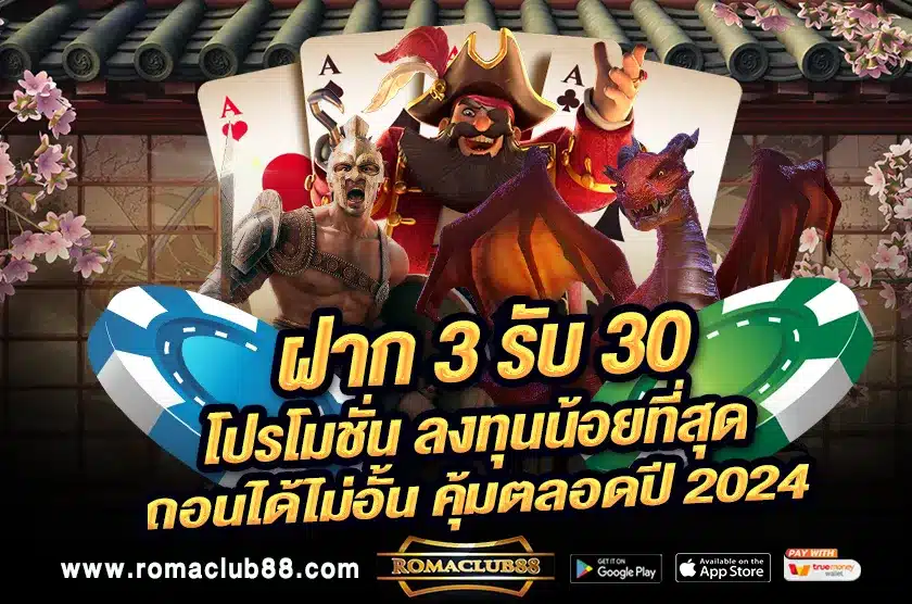 โปรเว็บตรง Romaclub88 ลงทุนน้อย ฝากเพียง 3 บาท รับ 30 บาท เล่นเกมสล็อตทุกค่าย